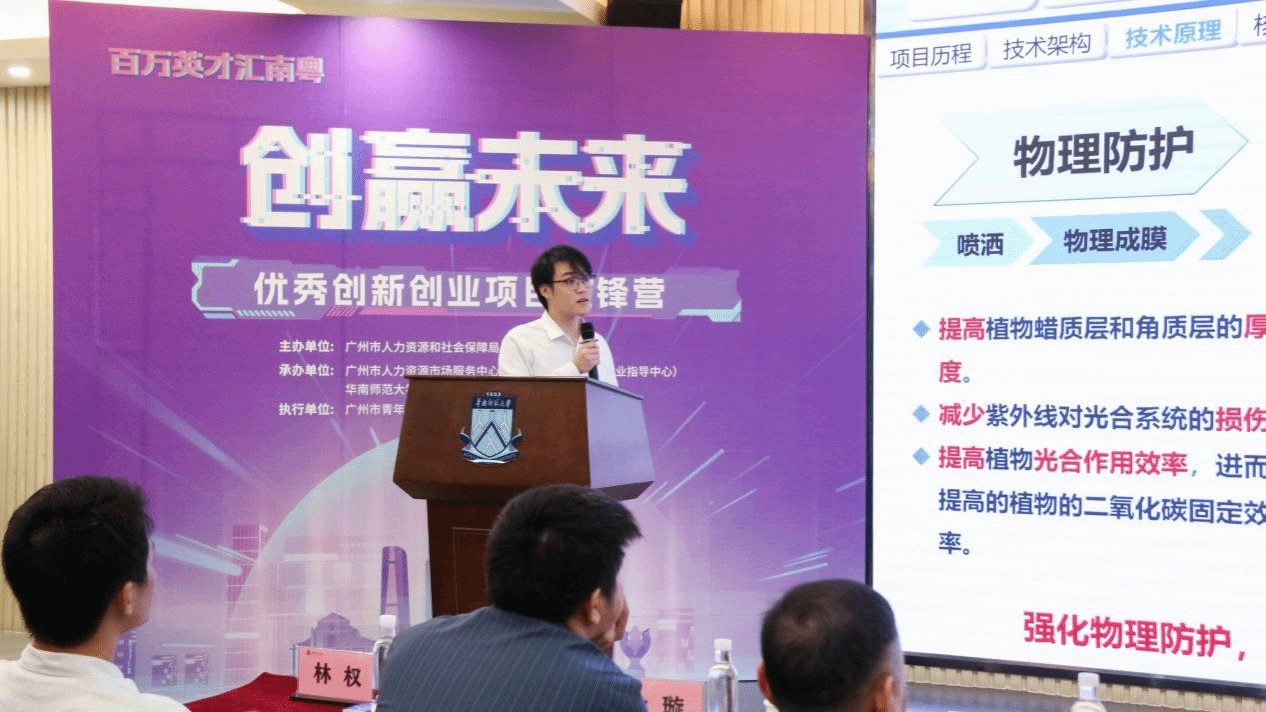 在众多优秀项目中,我校农业与生物学院推报的"光膜兴农"项目表现突出。该项目聚焦现代农业发展需求,创新开发出全新机制的光合高脂膜产品,致力于解决当前植保行业面临的食品安全、农药抗性等行业难题。项目展现出三大核心技术优势:显著减少农药使用量、广谱增产超过10%、有效提升作物抗性。"光膜兴农"项目由喻国辉、孙昀皓两位专业教师精心指导,团队成员包括徐文轩、徐培雅、王晓欢、杨子汐、卢丹羽等同学。这支创新团队,体现了我校学子扎实的专业知识和创新实践能力,充分展现了我校在农业科技人才培养方面的显著成效。