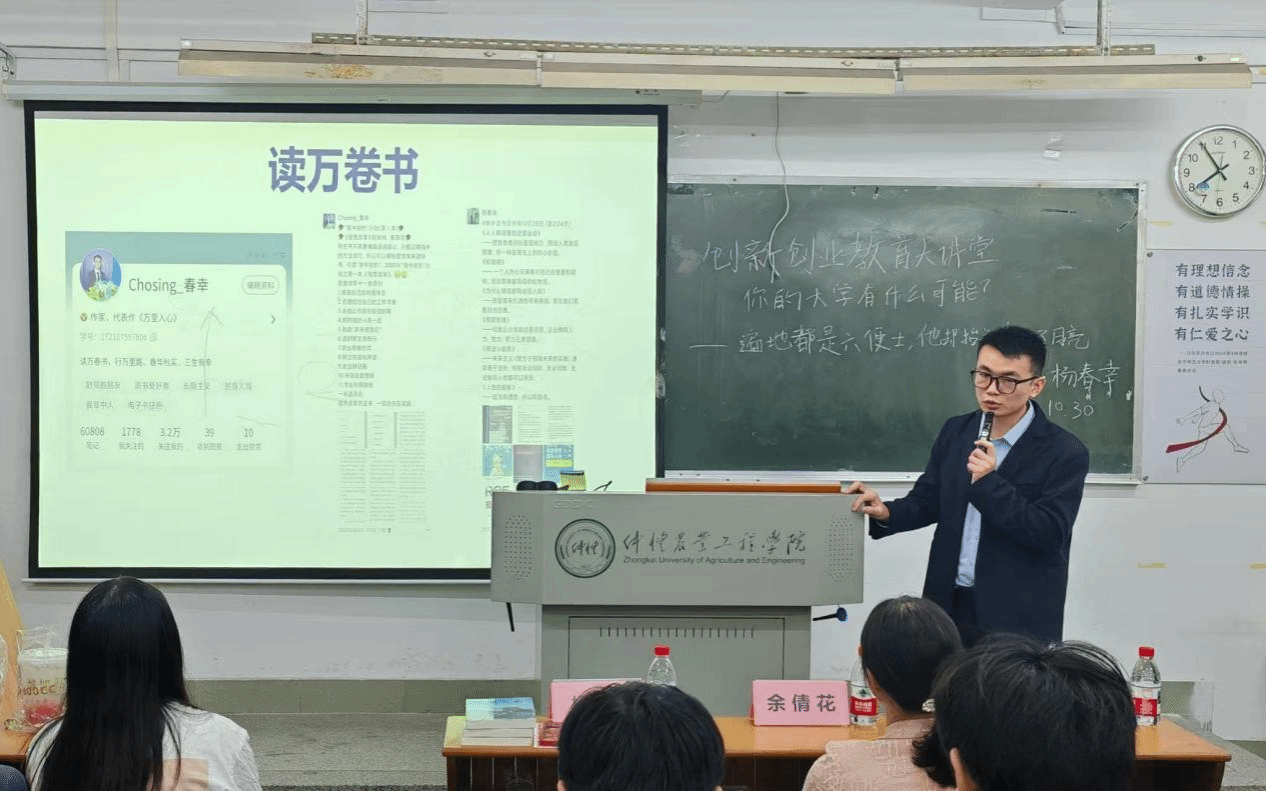 讲座中,杨春幸围绕“理想三寻:寻找自我、寻找工作、寻找理想”展开分享,结合自身大学时期广州骑行至北京的自我挑战、毕业后职场经验积累及长期坚持阅读、出版《万里入心》专著的理想实践,系统梳理从迷茫探索到理想落地的过程和方法,并分享“人生就是一场创业,把自己作为方法”的人生感悟,为学子们勾勒出“从探索到创造”的理想实践路径。
